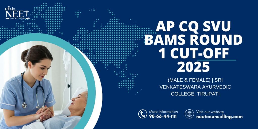 The Sri Venkateswara Ayurvedic College, Tirupati, united with Dr. NTR University of Health Sciences (NTRUHS), is one of Andhra Pradesh’s oldest Ayurvedic institutions. The Round 1 BAMS cutoff 2025 for the SVU region shows modest scores under the Andhra Pradesh Conventional Quota (AP CQ).