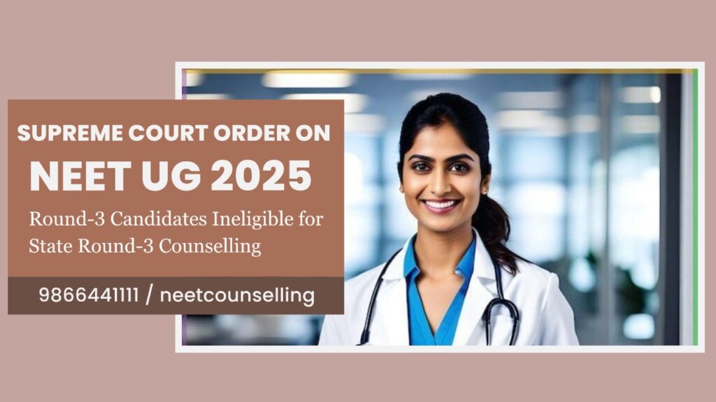 In a major update for NEET UG 2025 aspirants and state counselling authorities, the Hon’ble Supreme Court of India has issued a clear directive regarding participation rules for All India Quota (AIQ) Round-3 candidates.