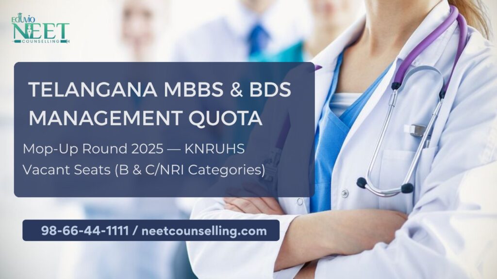 If you need expert guidance for MBBS/BDS admissions under Management or NRI quota, Eduvio offers personalized counselling support for Telangana and other state rounds.